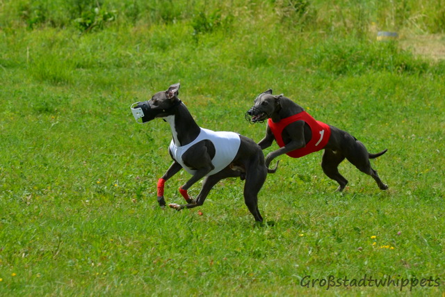 Heute haben uns unsere Leinenträger ganz früh geweckt um mit uns in das Auto zu steigen und weg zu fahren. Wir sind zur Coursinf EM auf die Halbinsel Pouch gefahren. Da waren ganz ganz viele andere Windhunde und alle waren sehr aufgeregt. Dort haben wir dann auch unsere Ziehmama und unseren Ziehpapa wiedergetroffen. Da hab ich mich ja total gefreut. Ansonsten haben wir ziemlich viel rumgestanden und dauernd war so ein komisches Geräusch zu hören. Naja ist ziemlich ausgeflippt und stand fast die ganze Zeit auf den Hinterbeinen. Sie meinte da rennen welche, ich will auch! Damit hat sie mich ganz irre gemacht. Frauchen hat fleißig Bilder gemacht und hat gesagt, dass auch einige aus unserer Verwandtschaft mitlaufen. Z.B. mein Bruder Logan.